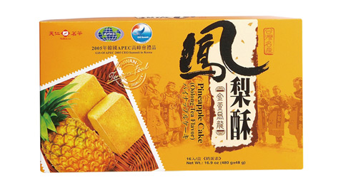 2005年韓國APEC高峰會禮品 皮酥餡軟,含豐富的鳳梨纖維,餅皮添加烏龍茶粉,內餡為傳統做法的冬瓜醬+鳳梨醬,酸甜度剛剛好! ![]() |